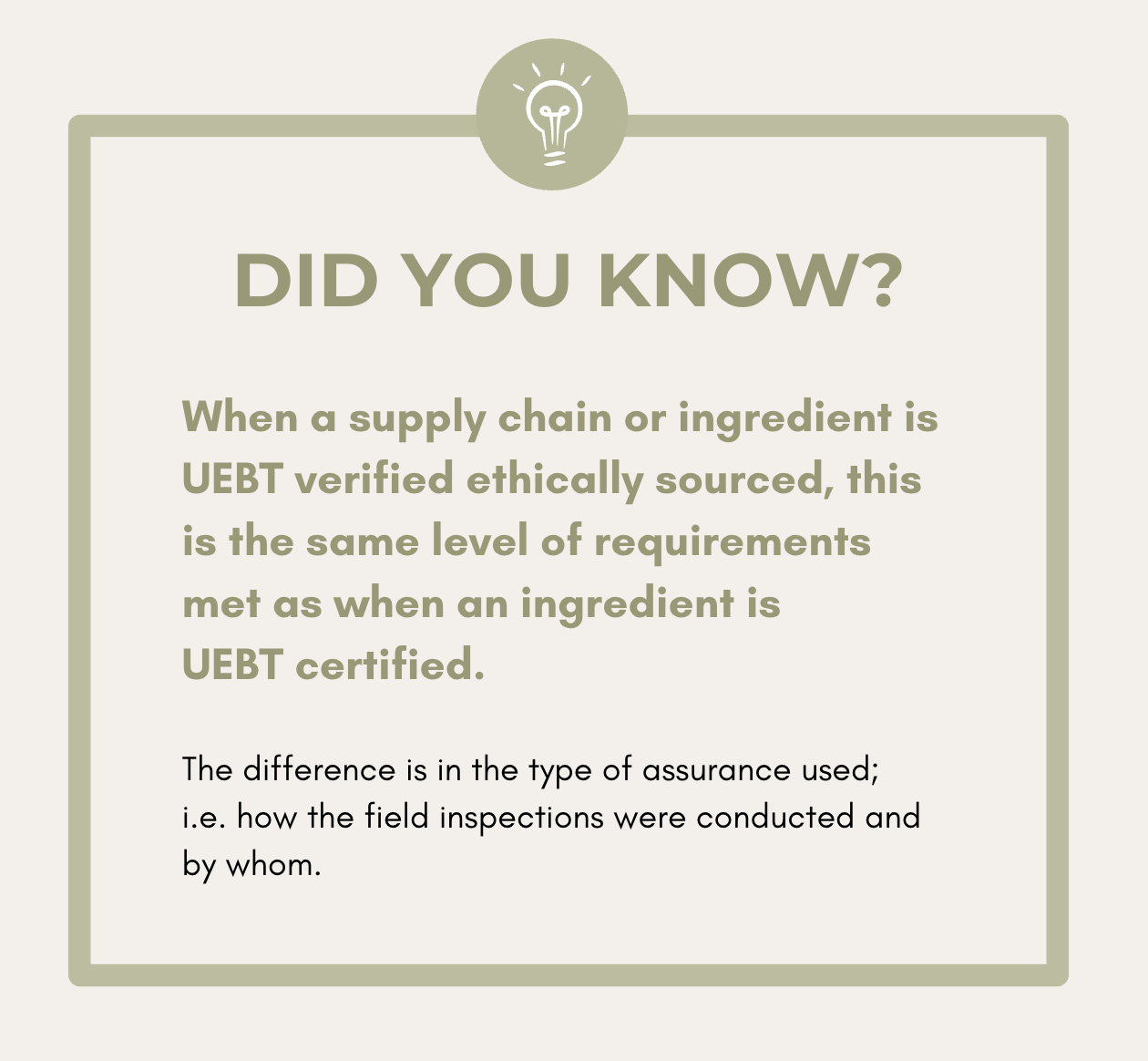 Provided independent assurance against the regenerative add-on to the UEBT standard to validate progress made via UEBT assessment programmes such as certification.