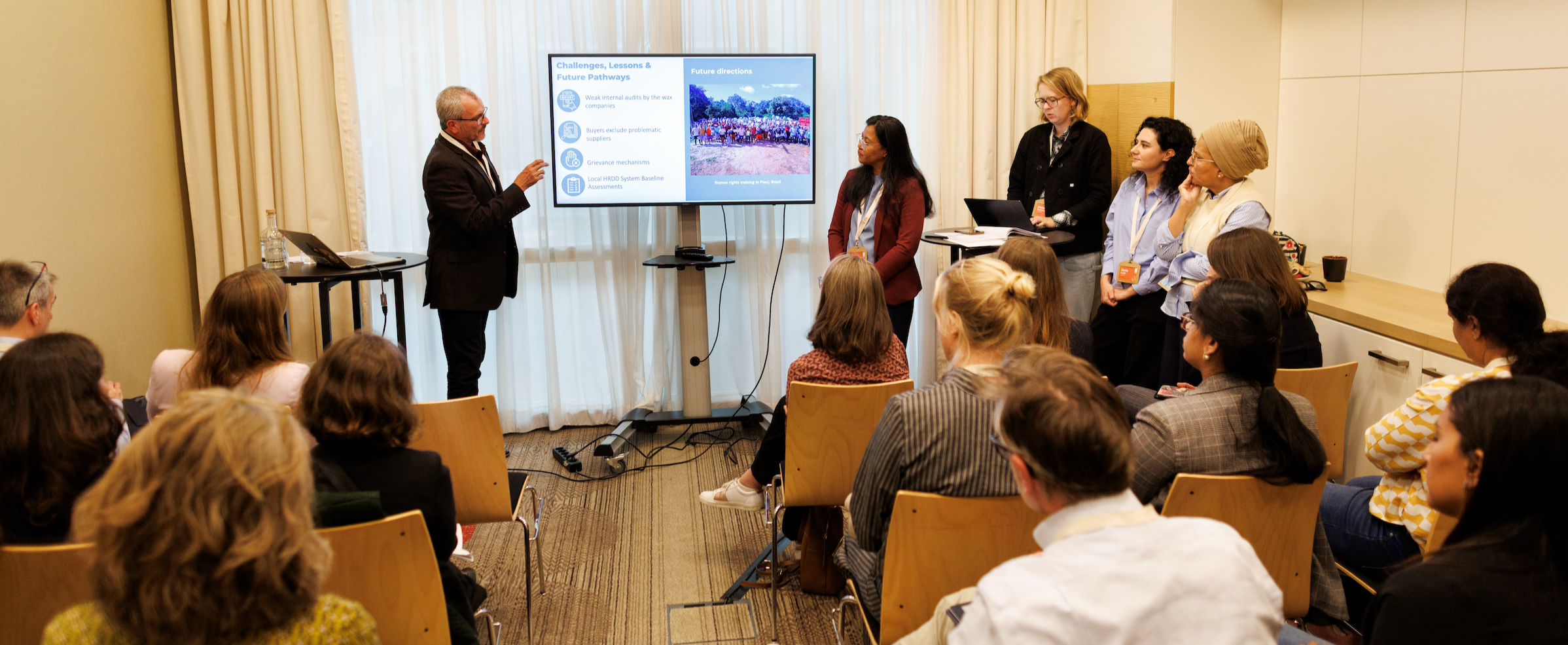 The conference opened with a call to action highlighting both the volatility and possibility of this moment for business. Insights from UEBT’s report Resilience Rooted in Nature set the tone, showing how biodiversity‑friendly sourcing strengthens climate adaptation and stabilizes supply. Leadership keynotes from UNEP‑WCMC and Nelixia underscored the growing urgency: businesses face unprecedented uncertainty and must balance technical systems with the human realities in sourcing landscapes. Day‑two breakouts dove into practical solutions—from integrating botanicals in nature frameworks to real‑world due diligence challenges and local actions on human rights and biodiversity. Panelists stressed long‑term partnerships, the need to shift away from transactional sourcing, and the importance of framing biodiversity actions as core to climate resilience and business continuity.