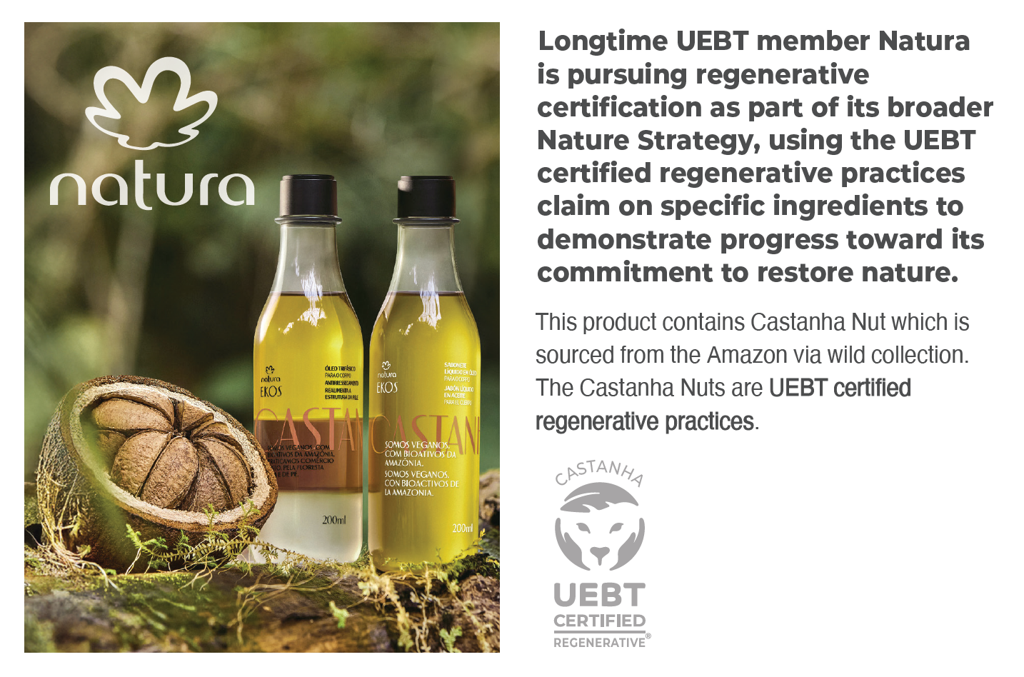 Established regenerative design across botanical supply chains in partnership with UEBT members and partners in Açaí, Castanha, Babaçu, Rooibos, Vanilla, Citrus, Rose, Cassia, Chamomile and several other supply chains.